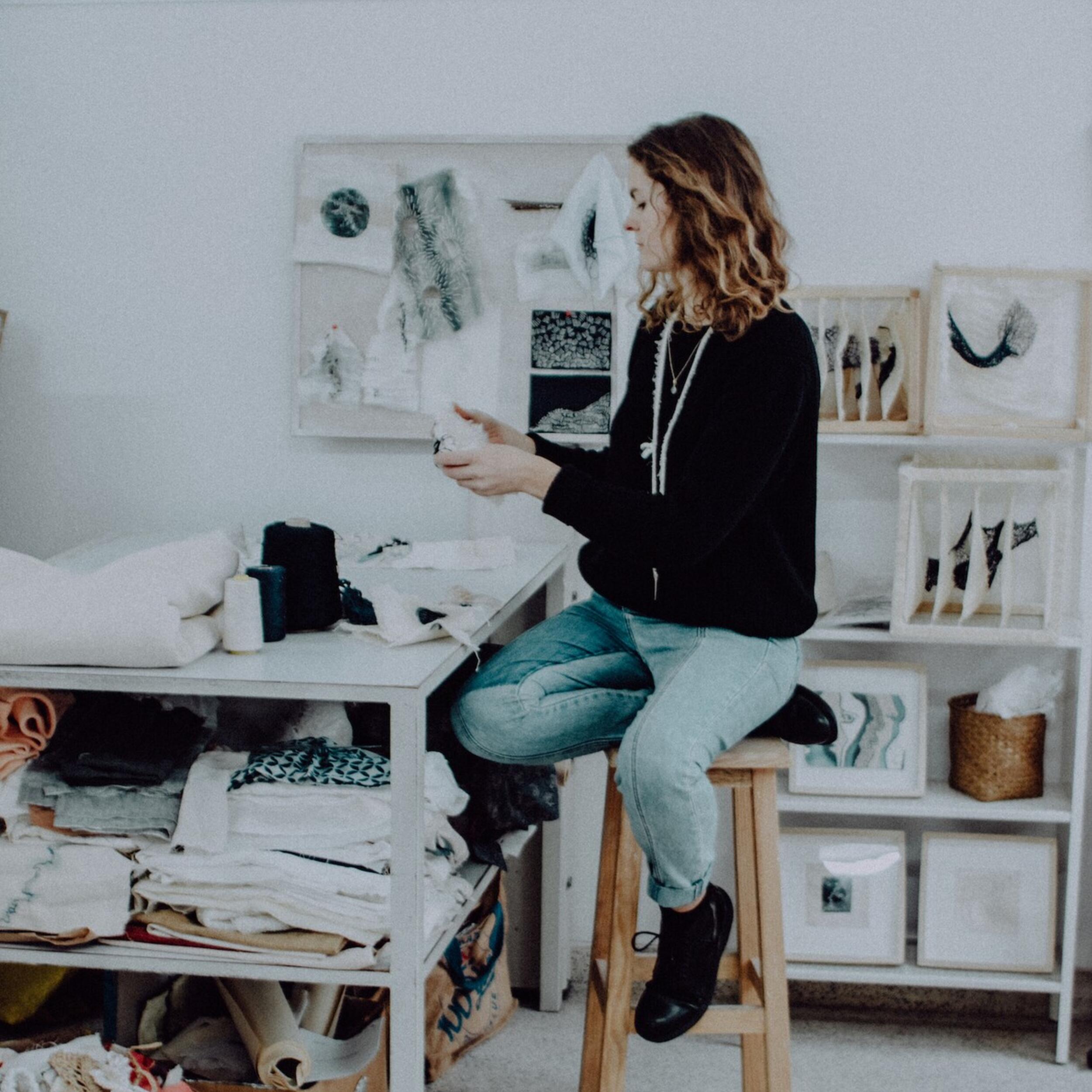 Nascida no País de Gales e atualmente residente no Porto, Sharkey utiliza materiais têxteis através de diversas técnicas de artesanato manual, como cestaria, bordado, pintura e tecelagem. Na sua prática artística, utiliza principalmente a agulha e linha para transformar ideias intangíveis em criações físicas e concretas. Através de uma costura lenta e repetitiva e da criação de rendas, ela concebe formas abstratas em duas e três dimensões, fundindo simplicidade com complexidade.