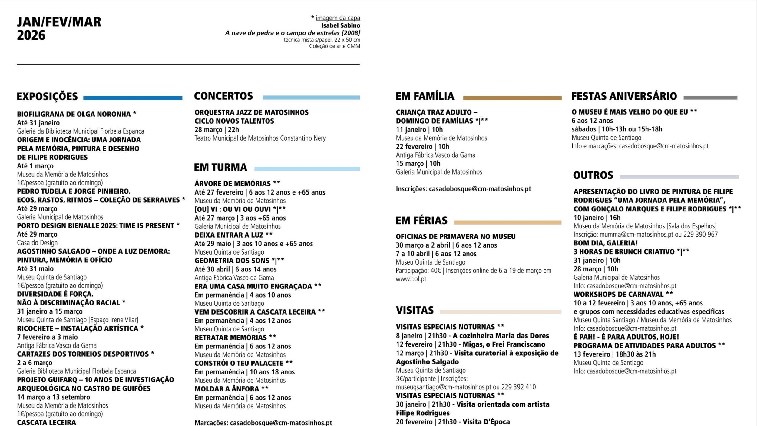 01 Jan '26 a 31 Mar '26Atividades Culturais - 1.º trimestre 2026