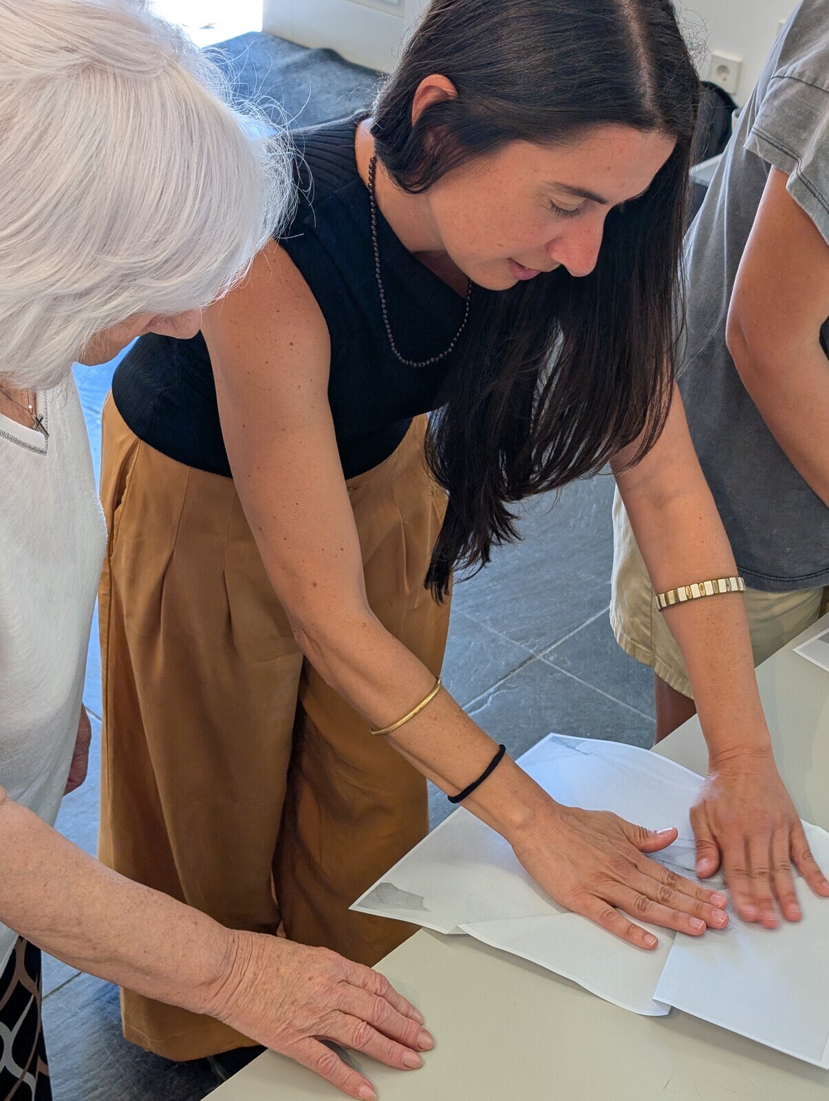 Durante os encontros, cada participante foi fotografado por Giampaoli e, em seguida, envolveu-se num processo colaborativo de intervenção da própria imagem, através de dobras sucessivas no papel. O resultado dessas experimentações foi integrado na exposição, criando uma nova camada de leitura e participação dentro do espaço expositivo.