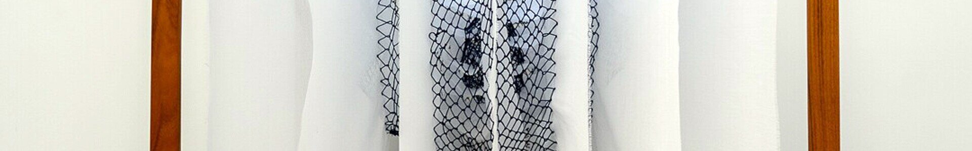 Esta exploração acontece através de uma prática de costura manual lenta e baseada no tempo — uma técnica muito física, que ocorre como uma dança entre o corpo, a linha e o espaço. O percurso de um único fio flutua, sem peso — mas cria uma forma sólida que viaja e emerge através de camadas de algodão branco.
